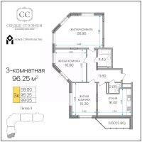 Общая площадь96,25 м²