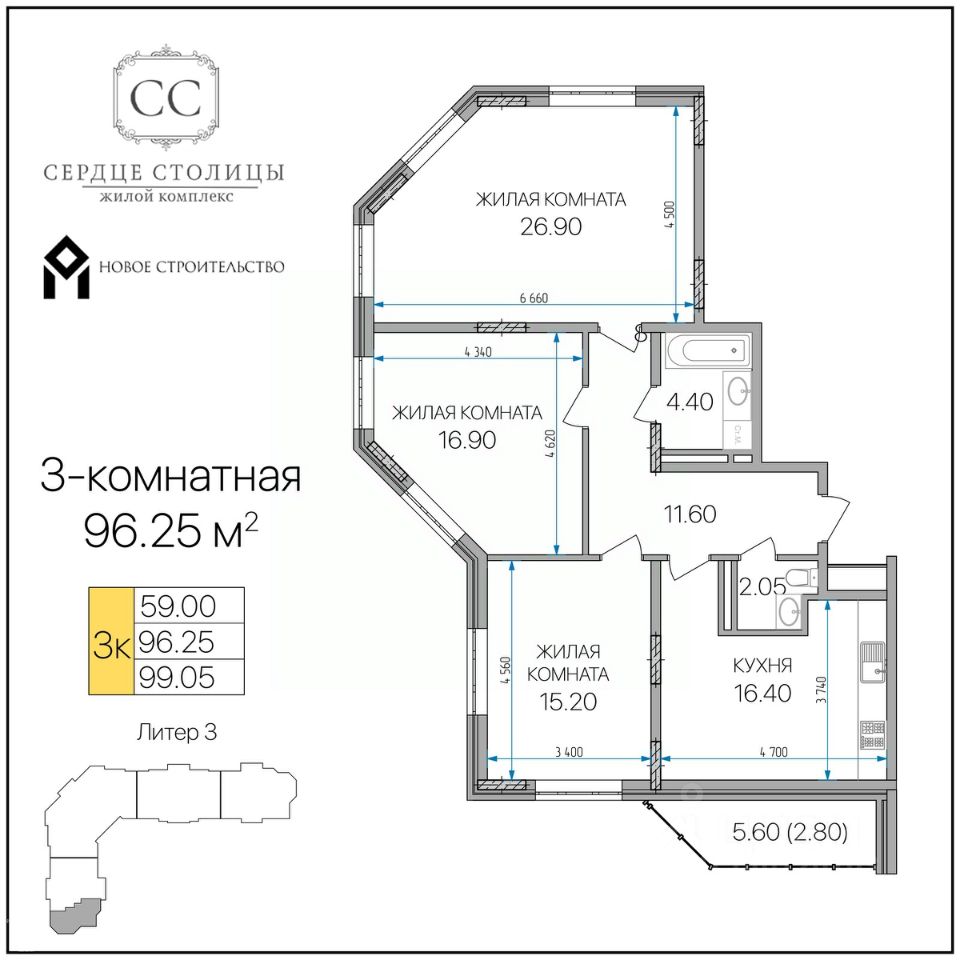 Общая площадь96,25 м²