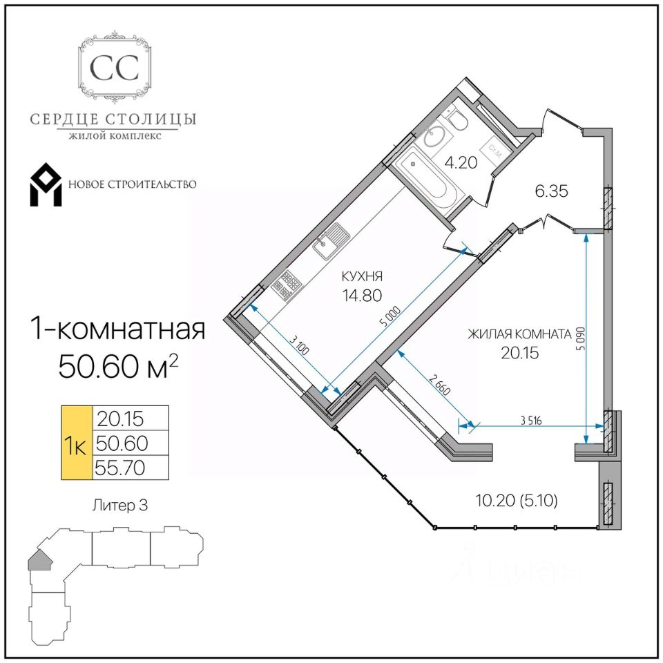 Общая площадь50,6 м²