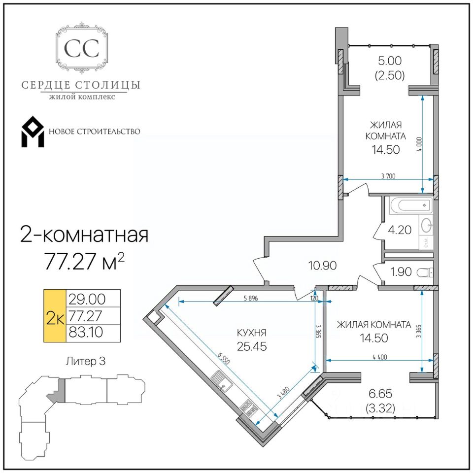 Общая площадь77,27 м²