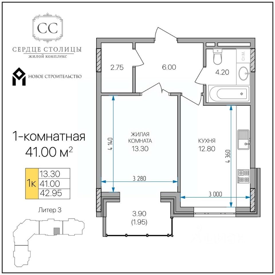 Общая площадь41 м²