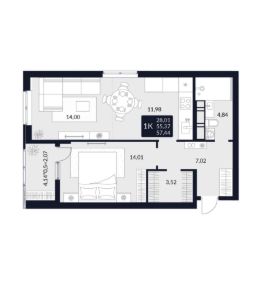 Общая площадь57,44 м²