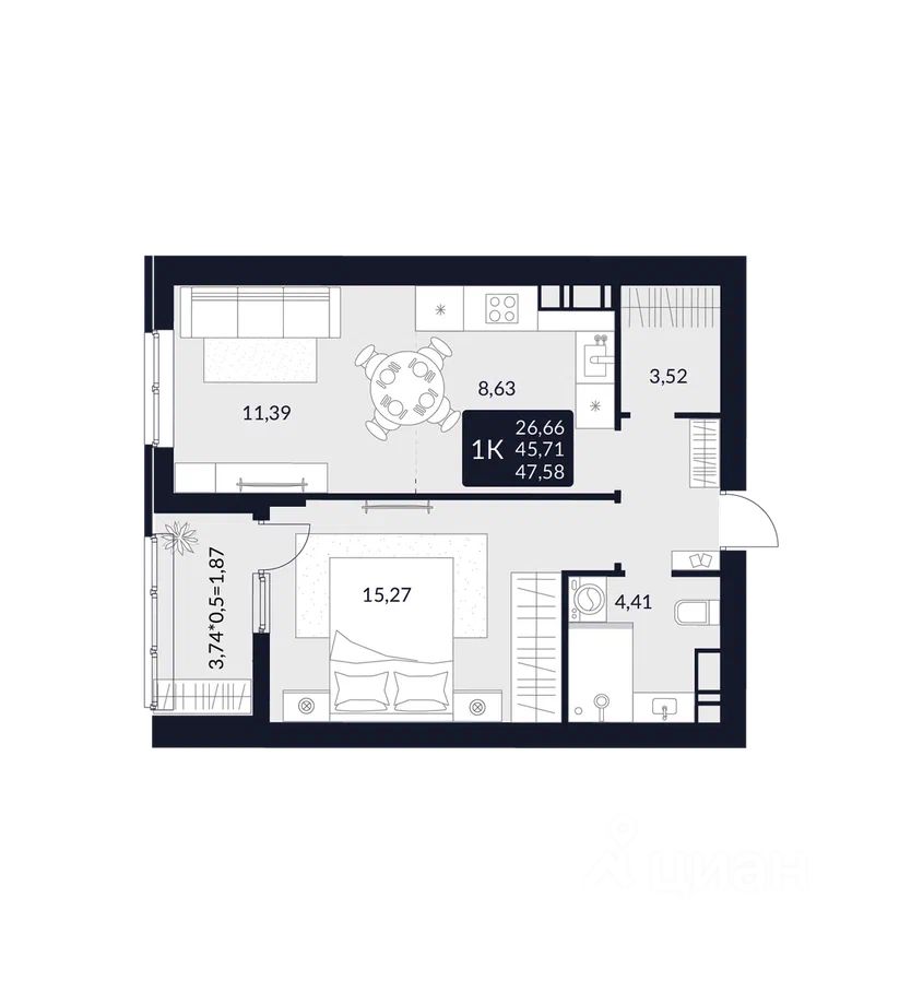 Общая площадь47,58 м²