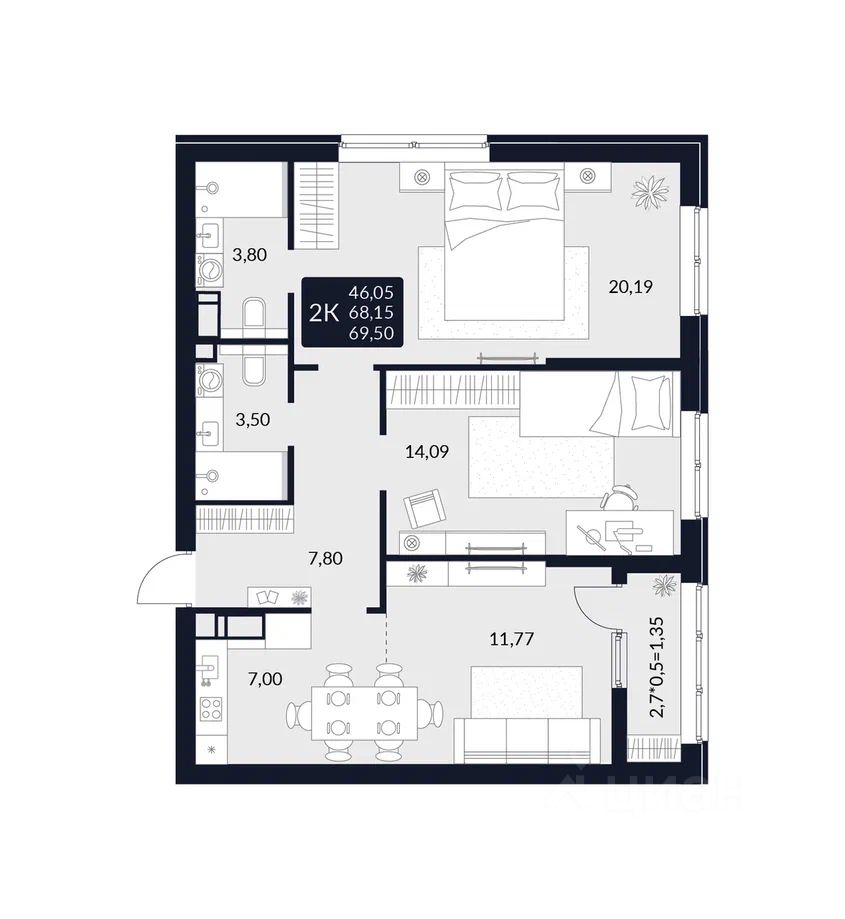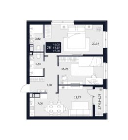 Общая площадь69,5 м²