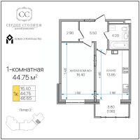Общая площадь44,75 м²