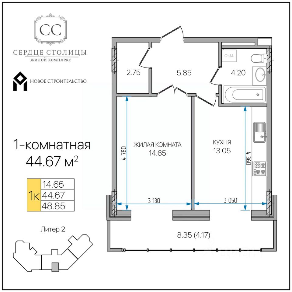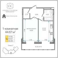 Общая площадь44,67 м²
