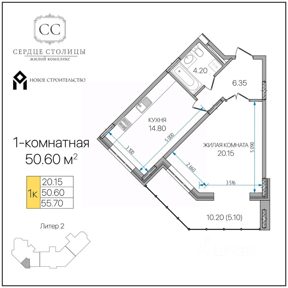 Общая площадь50,6 м²