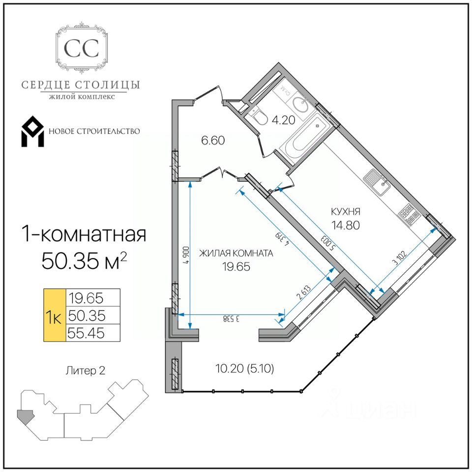 Общая площадь50,35 м²