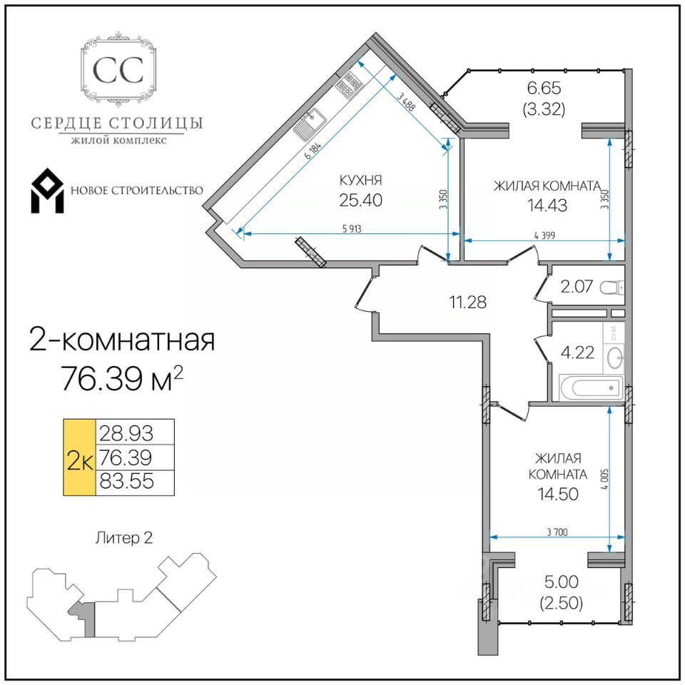 Общая площадь76,39 м²