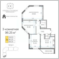 Общая площадь96,25 м²