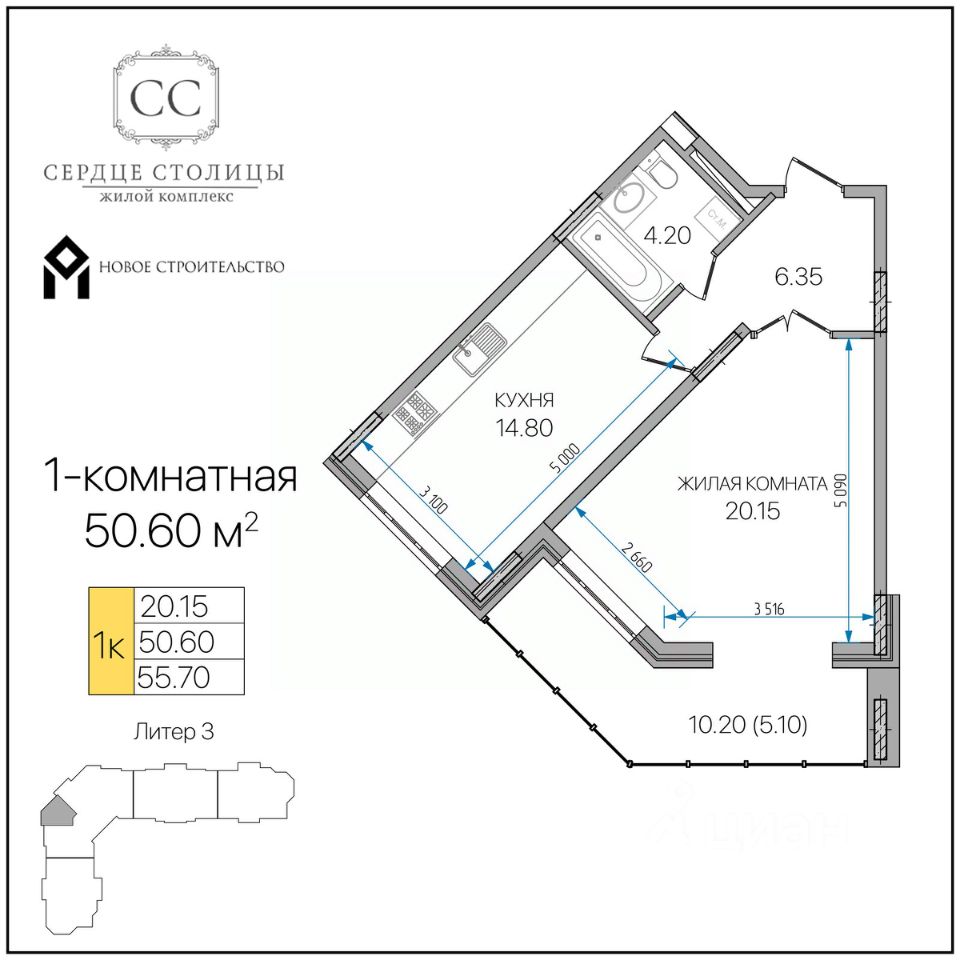 Общая площадь50,6 м²