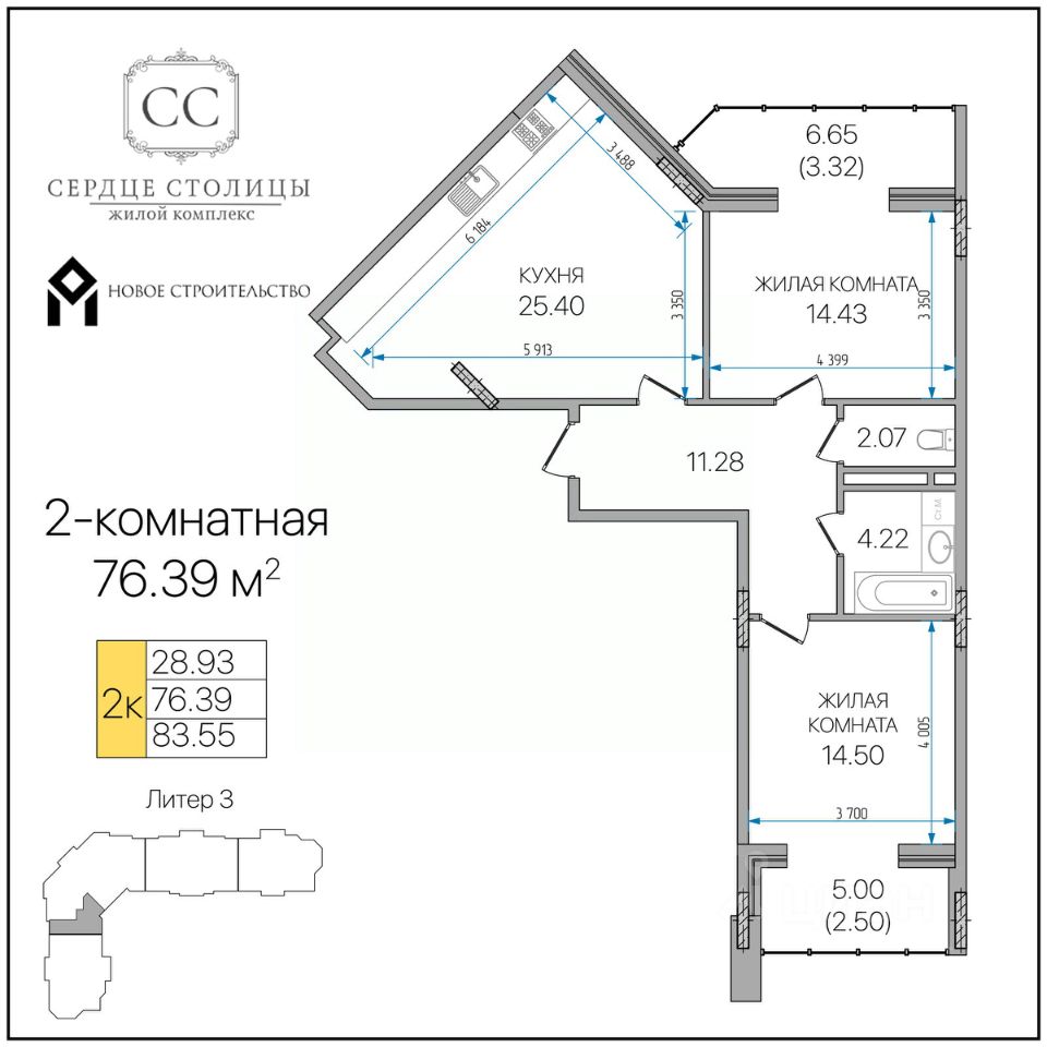 Общая площадь76,39 м²