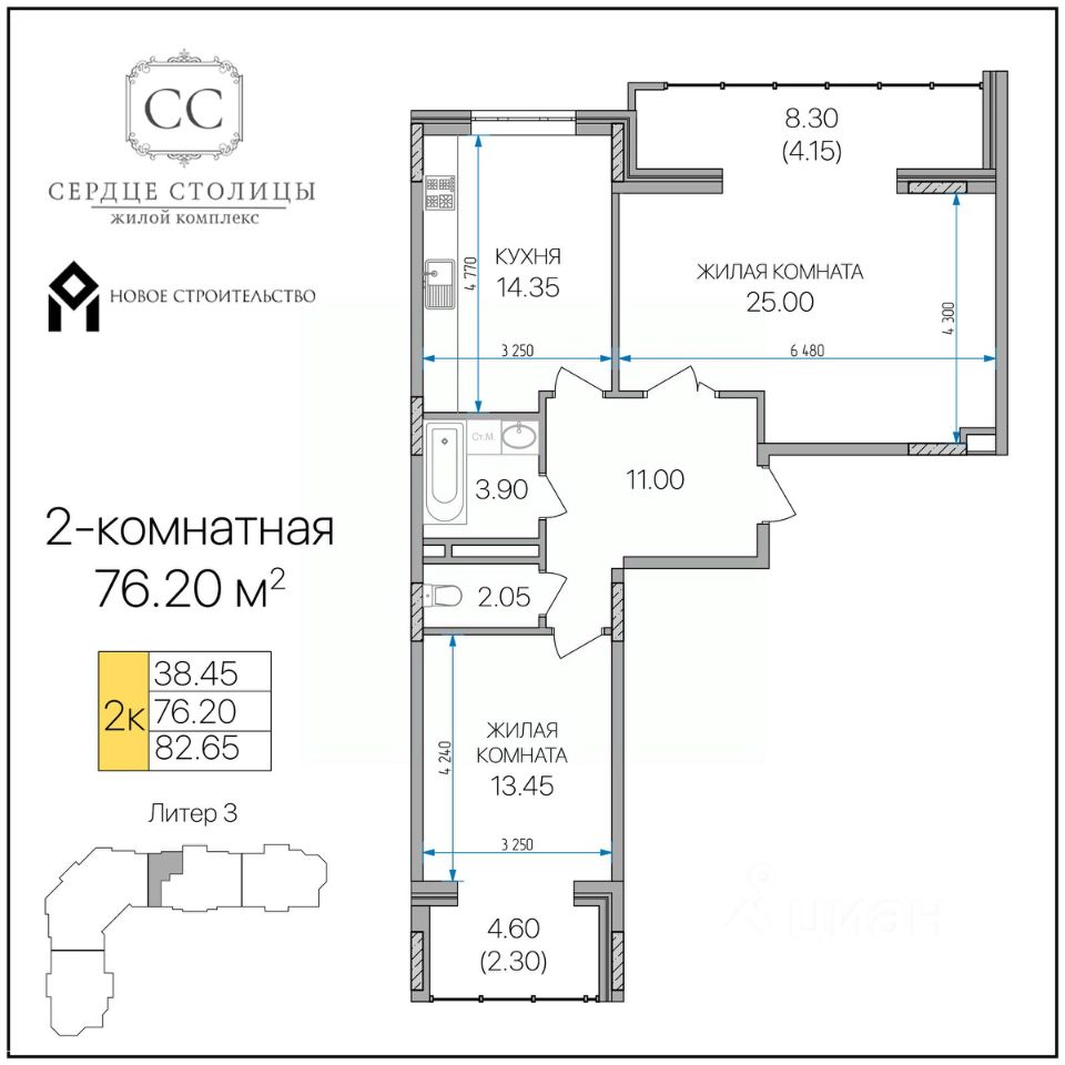 Общая площадь76,2 м²