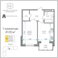 Общая площадь41,05 м²