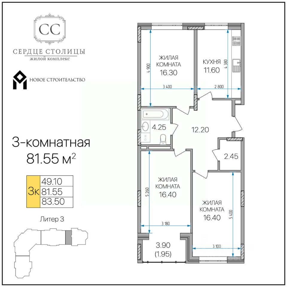 Общая площадь81,55 м²