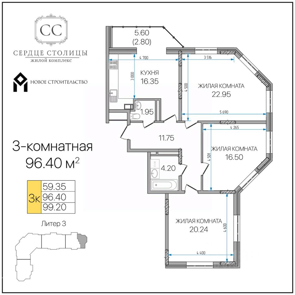 Общая площадь96,4 м²