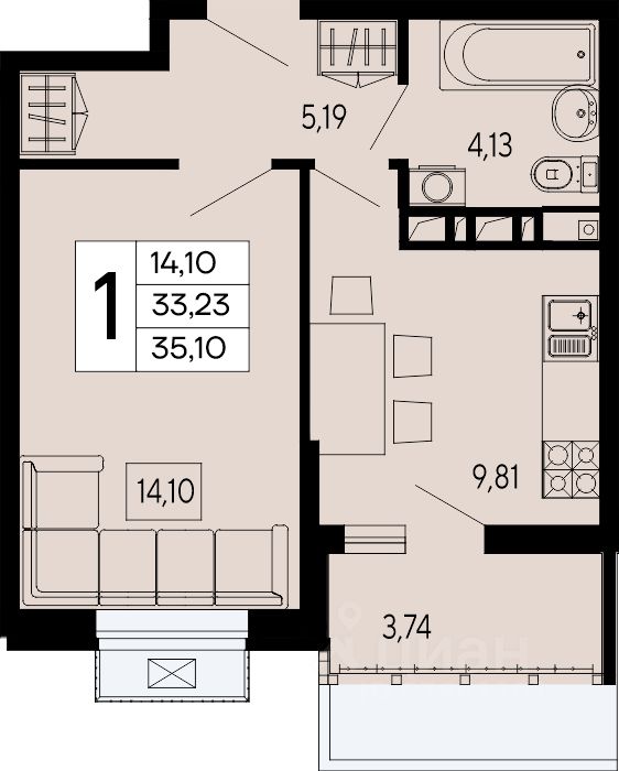 14,1 м²