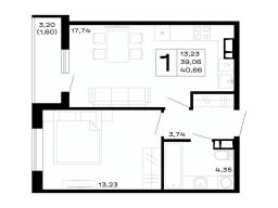 Продается 1-комн. квартира, 40,66 м²