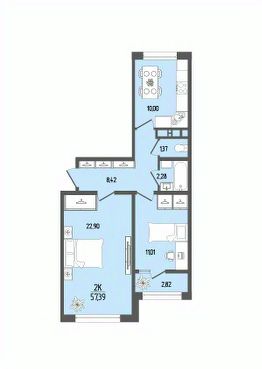 Общая площадь57,39 м²
