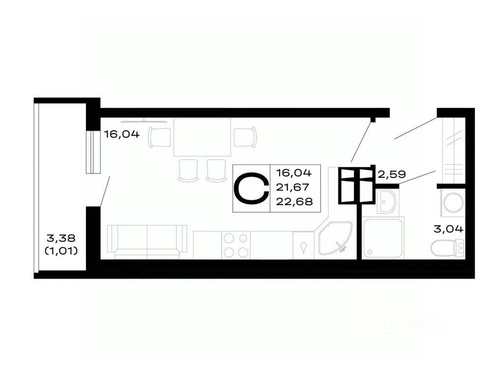 Общая площадь22,68 м²