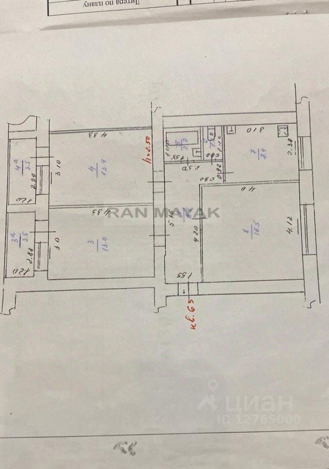 Арт. 88387838 Продается 3-комнатная квартира на 1 этаже в кирпичном доме!