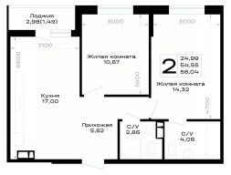 Продается 2-комн. квартира, 56,04 м²