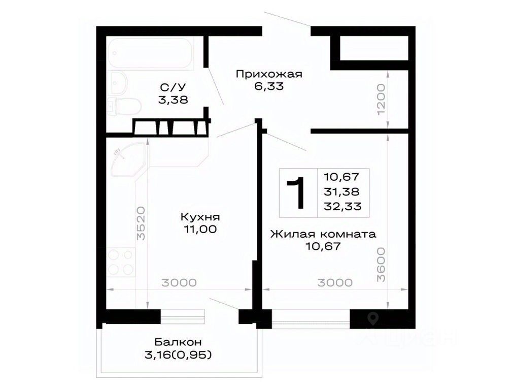 Общая площадь32,33 м²