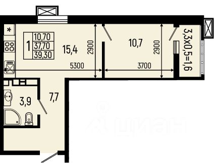 39,3 м²