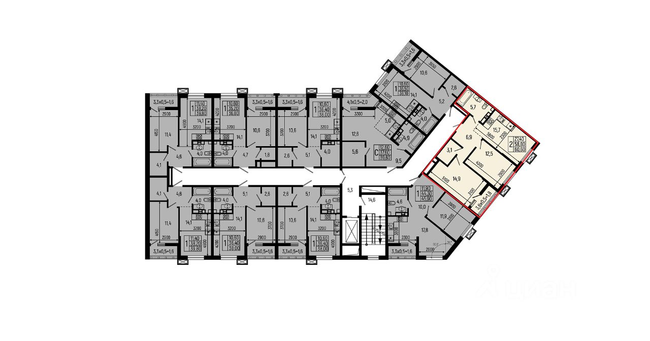 60,6 м²