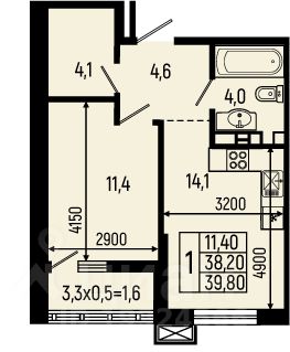 11,4 м²