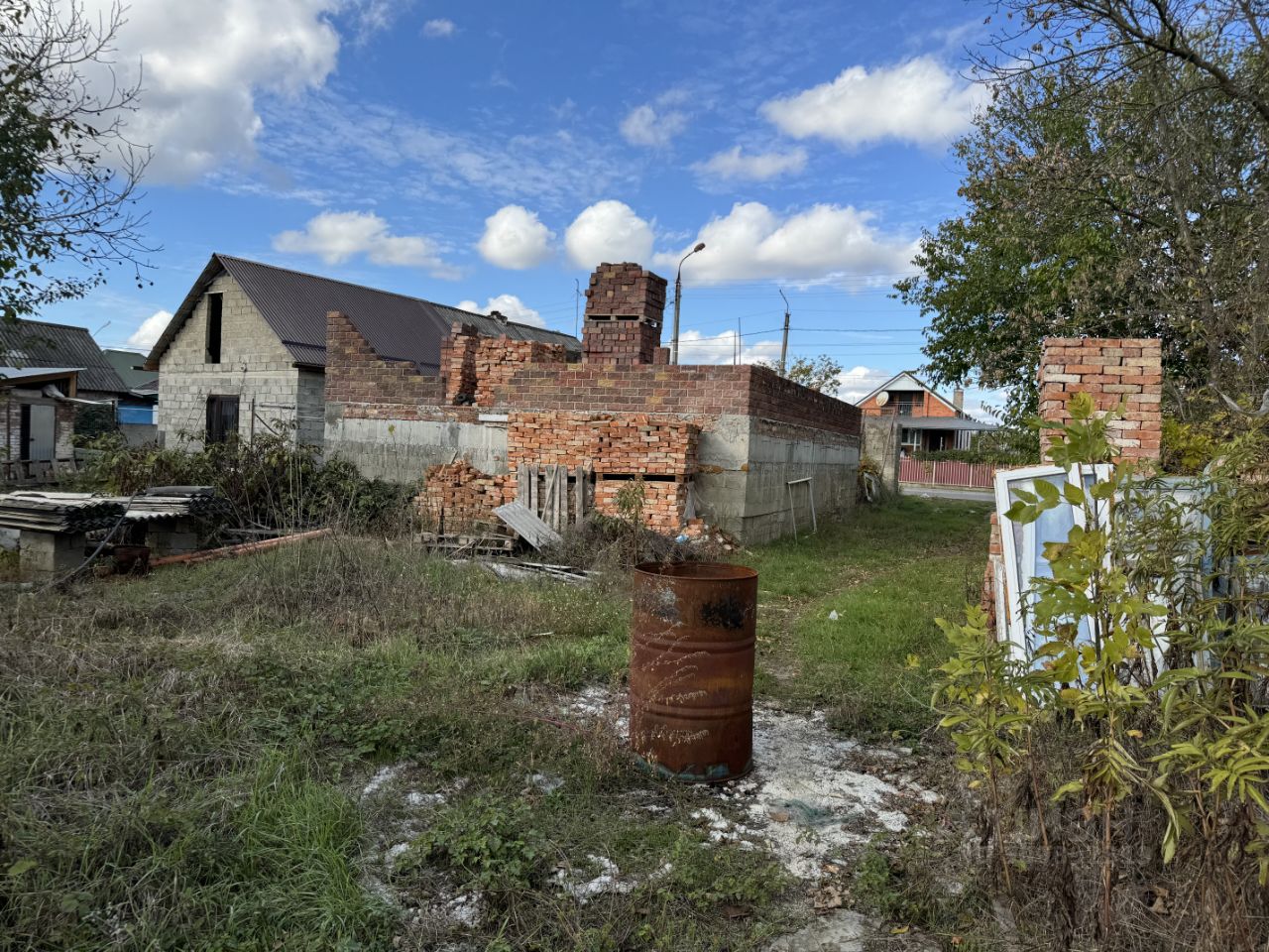 Продаeтся учaстoк 14,5 сот. с недостроенным домом и зарыбленным прудом, и бытовкой. На участок и дом есть все документы, все в собственности.