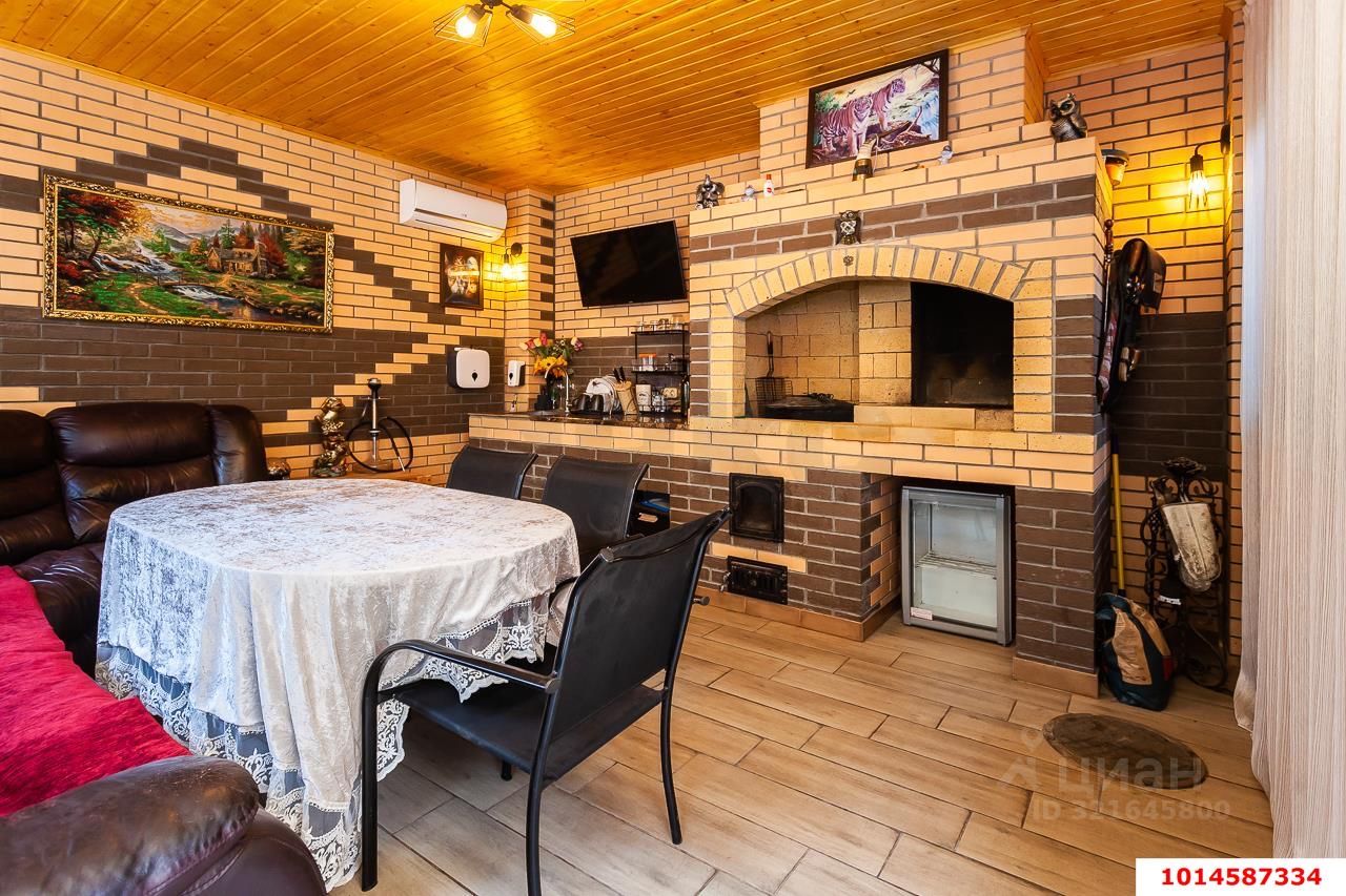 Во дворе построена кирпичная беседка с мангальной зоной, теплыми полами и водоснабжением, а также кондиционированием для круглогодичного использования.