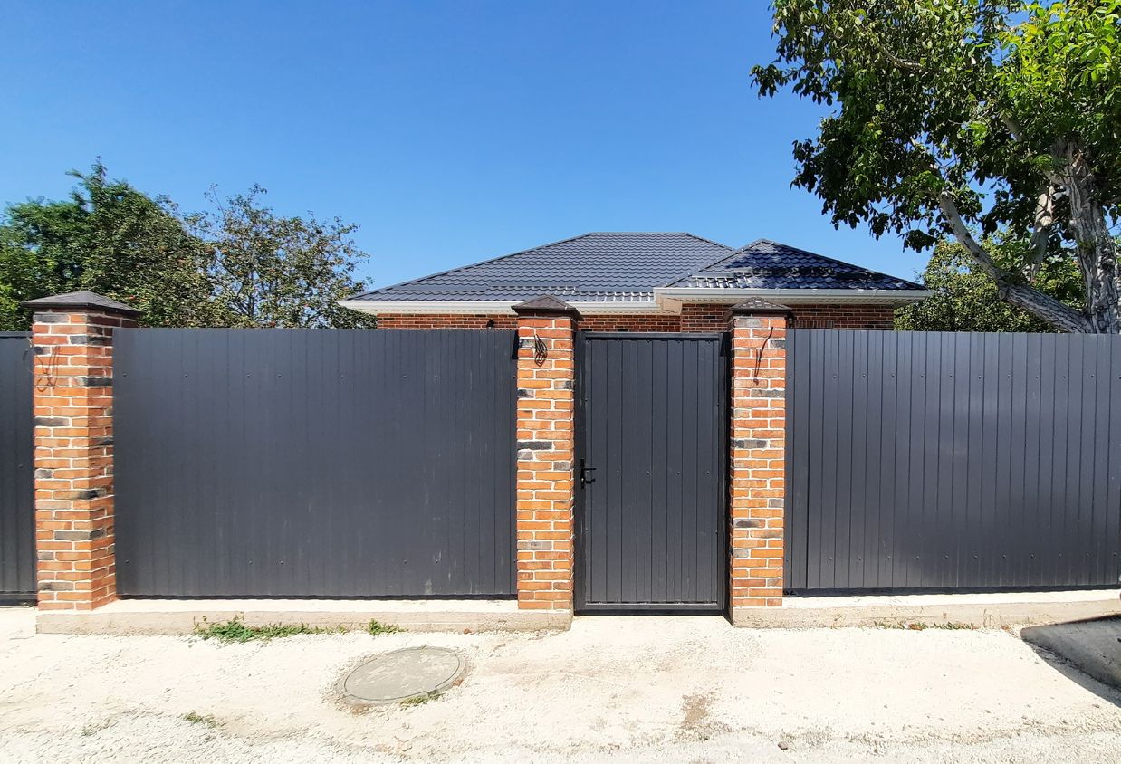 Построен из блока,облицован керамическим кирпичом.