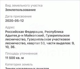 Местоположение: Республика Адыгея, р-н Майкопский, Гузерипльское участковое лесничество, квартал 53, части выделов: 9, 10, 36. Через приобретение ООО.