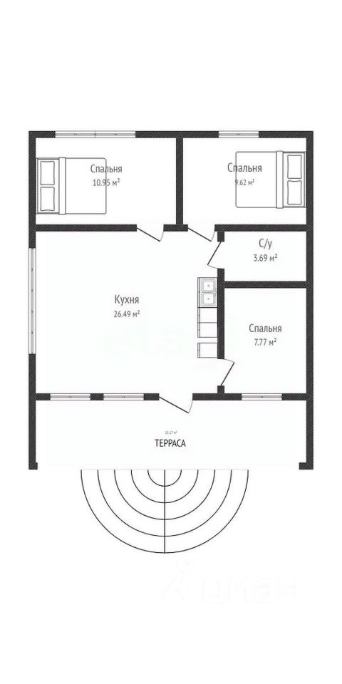 • Планировка: 3 комнаты, кухня-гостиная 27 кв.м. - простор и функциональность.