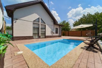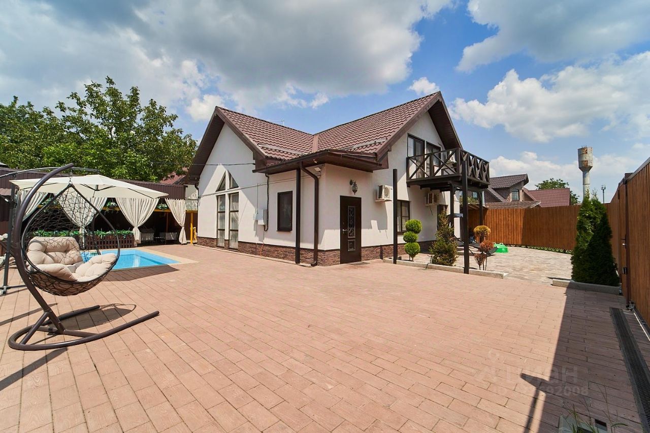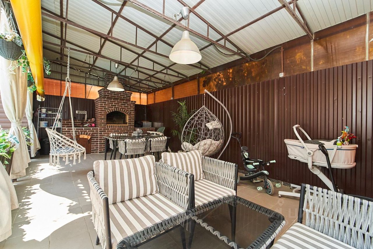 На участке летняя крытая беседка с мангальной зоной, подогреваемый бассейн с подсветкой, по периметру высажены хвойные деревья, так же имеется подсобное помещение с с/у и вальер для большой собаки.