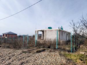 Недостроенный дом на участке правильной прямоугольной формы 15сот. Участок выровнен. Есть разрешение на строительство. Подведено электричество. Усиленный фундамент, возведен 1 этаж, колонны, перекрытие. Септик для бани. Конструкция под баню или беседку. Найдено место для скважины. Газ, вода вдоль участка. Ограждение. Строили для себя. Шикарный вид на озеро
