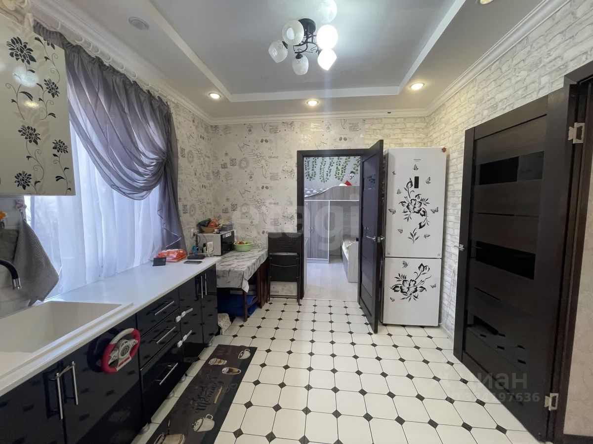 Практичные материалы отделки включают ламинат в жилых комнатах, керамическую плитку на полу кухни и в санузле, натяжные потолки и современные межкомнатные двери.