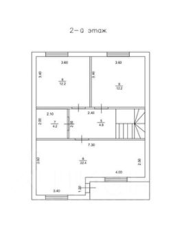 2 этаж: три изолированные комнаты, одна из которых мастер-спальня 22 кв.м. с выходом на балкон, санузел 4 кв.м.