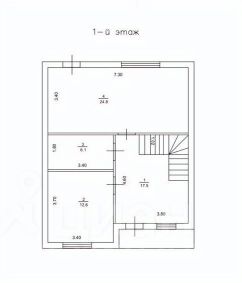 1 этаж: кухня-гостиная 25 кв.м с выходом на задний двор, просторный холл, гостевая комната 12,6 кв.м, санузел 6 кв.м,