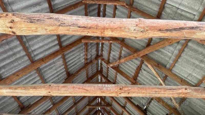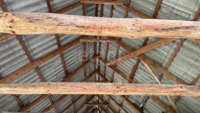 Имеющийся на участке домик площадью 38,5 кв. м требует восстановления и открывает потенциал для создания индивидуального жилого пространства под конкретные запросы.