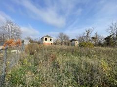 На участке имеется небольшой дом с гаражом. В гараже сухая смотровая яма.