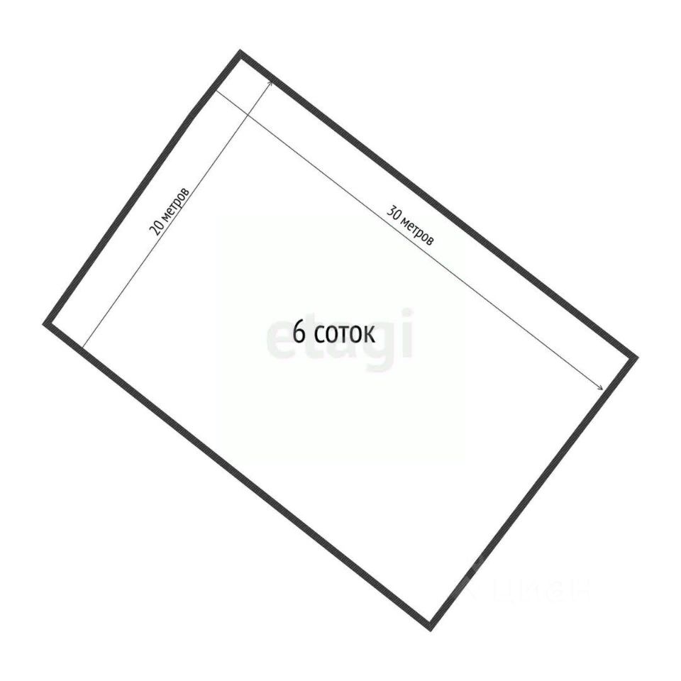 Участок имеет прямоугольную форму с фасадом 20 метров и глубиной 30 метров, что обеспечивает удобное зонирование и планировку будущего строительства.