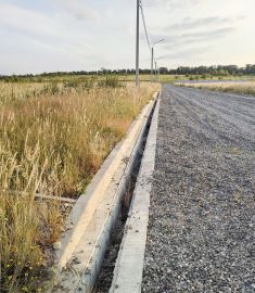 В данный момент участок находится в поле, где нет пока дороги и коммуникаций, но на соседних улицах уже проложена широкая дорога, засыпанная щебнем, установлены ливневки, бордюры, проложен тротуар, как это показано на фото). Проведены коммуникации. Работы ведутся, со временем, вдоль нашего участка тоже будет дорога и коммуникации и цена соответственно будет выше.