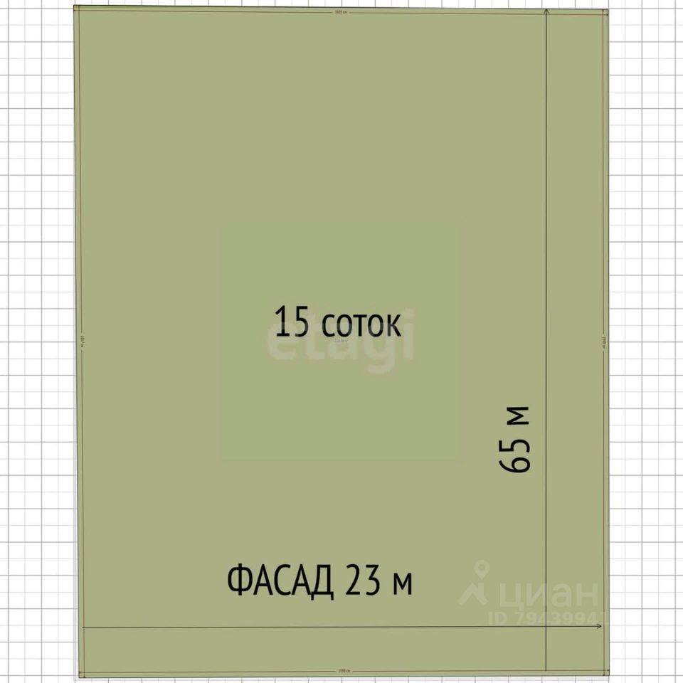 Участок ровный, сухой, фасад 23 метра и глубина участка 65 метров.