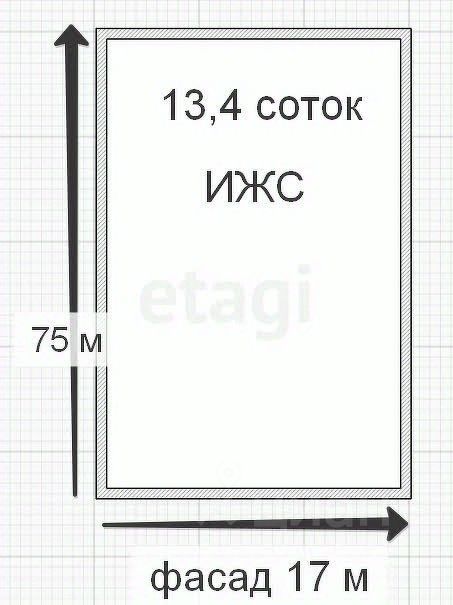 На участке есть ветхий дом под снос, площадь 24 кв.м. Фасад 17 м, в глубину 75 м, ровной прямоугольной формы. Центральные коммуникации проложены вдоль участка: газ, водопровод, электричество. Участок находится на центральной улице поселка, дорога заасфальтирована.