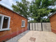 Территория благоустроена: двор выровнен и забетонирован, заменены сливные трубы, установлен новый забор. На участке имеется летняя кухня с санузлом и ванной, требующая косметического ремонта, что открывает возможности для дальнейшего обустройства. Участок украшают плодовые деревья — грецкий орех и абрикос, создающие приятную тень в летний период.