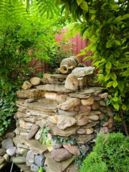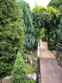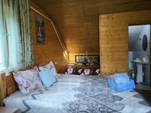 Гостевой дом окружен пышной зеленью, что помогает создать спокойную атмосферу, идеально подходящую для отдыха. Во дворе гостевого дома обустроена мангальная зона с беседками. В стадии строительства баня с бассейном ( см. фото)
