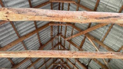 Имеющийся на участке домик площадью 38,5 кв. м требует восстановления и открывает потенциал для создания индивидуального жилого пространства под конкретные запросы.