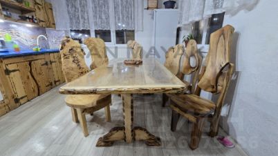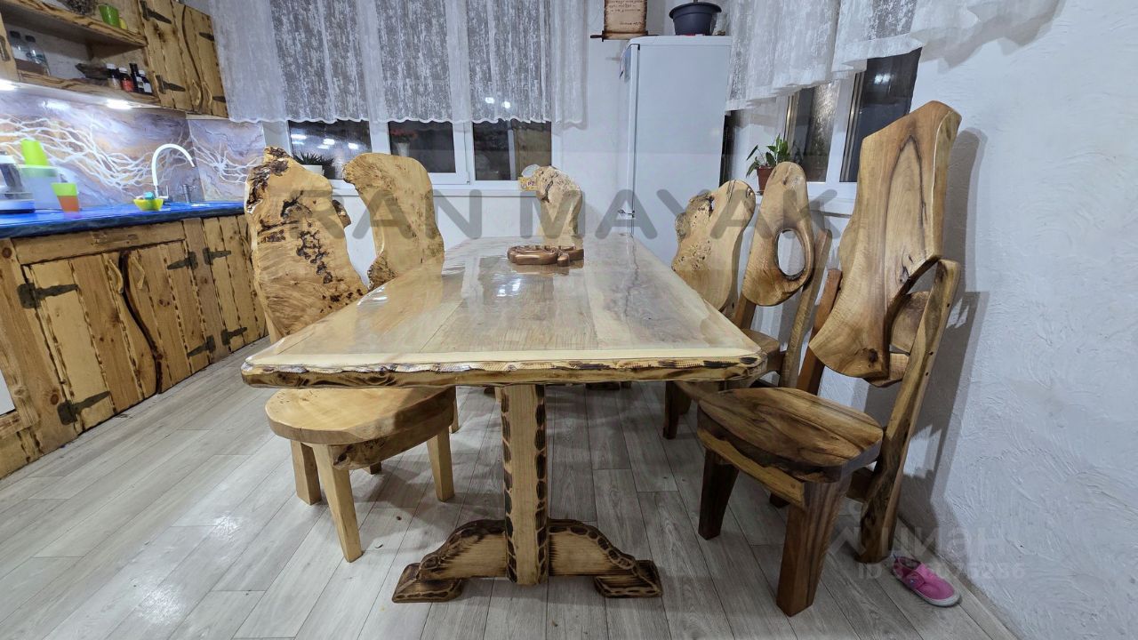 Владелец — мастер по работе с декоративным бетоном — создал здесь настоящую авторскую работу. На кухне вас встретит стильная столешница из эпоксидной смолы и элементы из узорного бетона. На втором этаже расположена декоративная колонна в виде скалы с эффектной подсветкой, создающая атмосферу уюта и единения с природой.